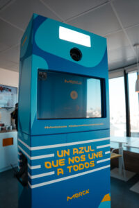 LAB Fotomatón puede ser customizado por tu marca con logos y claims para que resalte dentro del stand o podemos pasar desapercibidos con nuestro diseño minimalista y compacto. Además podemos incluir PLV corporativo.