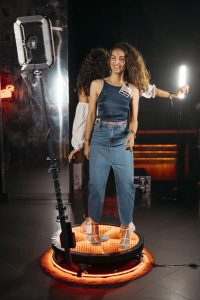 Solo tienes que subirte a LAB-360 y una cámara GoPro de última generación empezará a dar vueltas a tu alrededor mientras te graba. Además, tendrás atrezzo divertido, máquina de humo, billetes, confeti e iluminación para sacar una calidad de imagen espectacular.